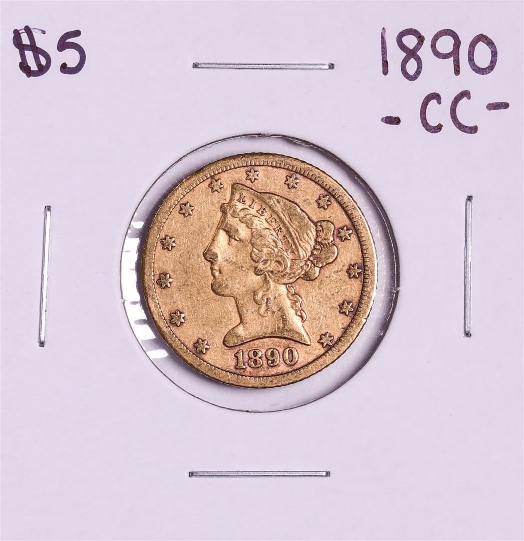 One 1890-CC $5 Liberty Head Half Eagle Gold Coin.