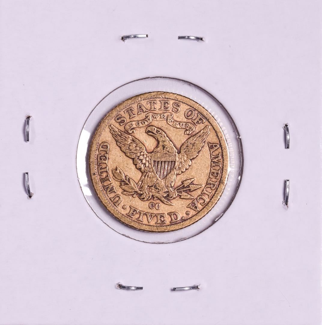 One 1890-CC $5 Liberty Head Half Eagle Gold Coin.