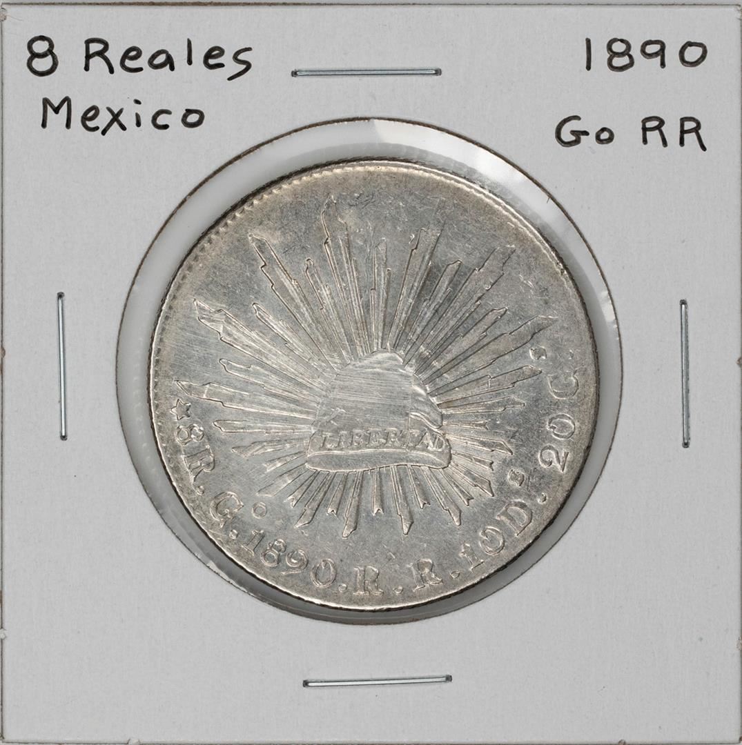 One 1890 Go RR Mexico 8 Reales Caps & Rays Silver Coin.