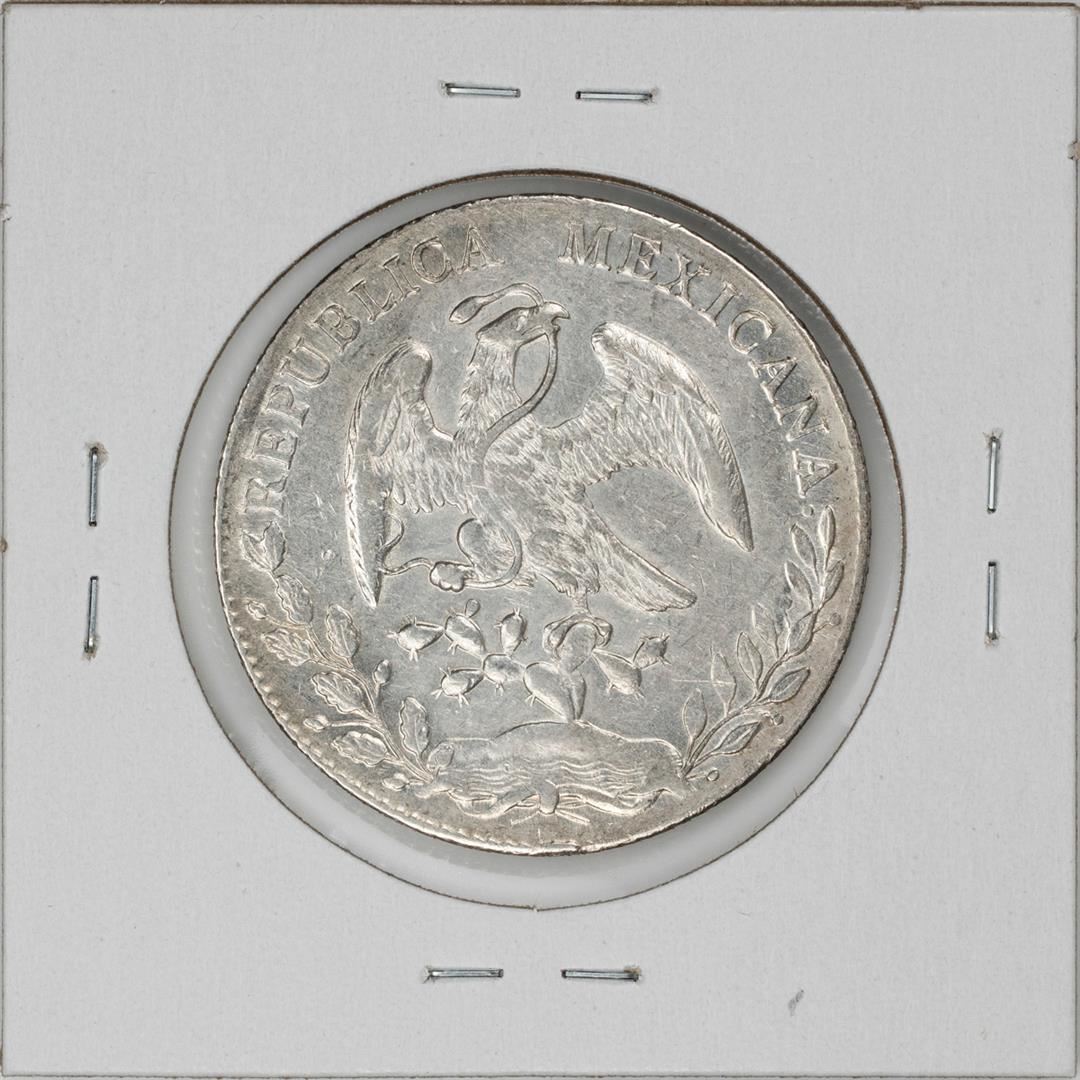 One 1890 Go RR Mexico 8 Reales Caps & Rays Silver Coin.