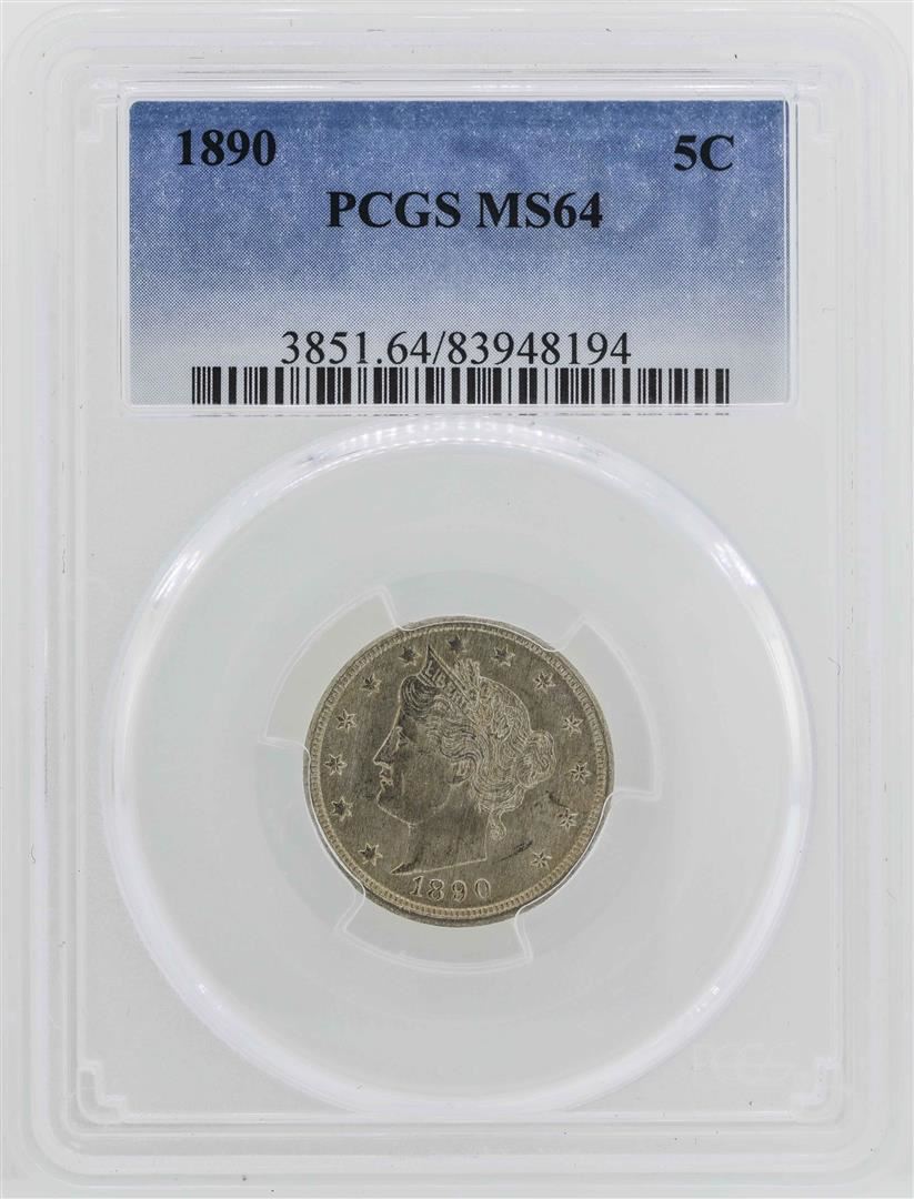 One 1890 Liberty V Nickel Coin PCGS MS64. PCGS Graded.