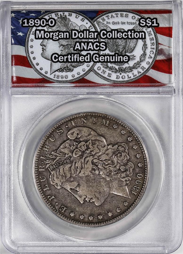 One 1890-O $1 Morgan Silver Dollar Coin ANACS Genuine. ANACS Certified.