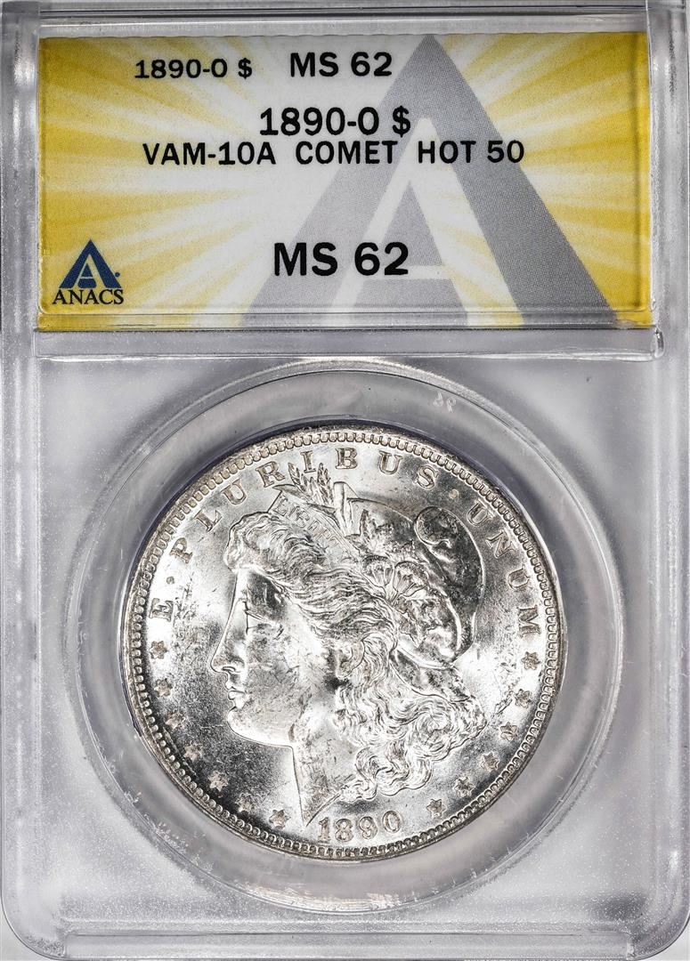 One 1890-O VAM-10A Comet Hot 50 $1 Morgan Silver Dollar Coin ANACS MS62. ANACS Certified.