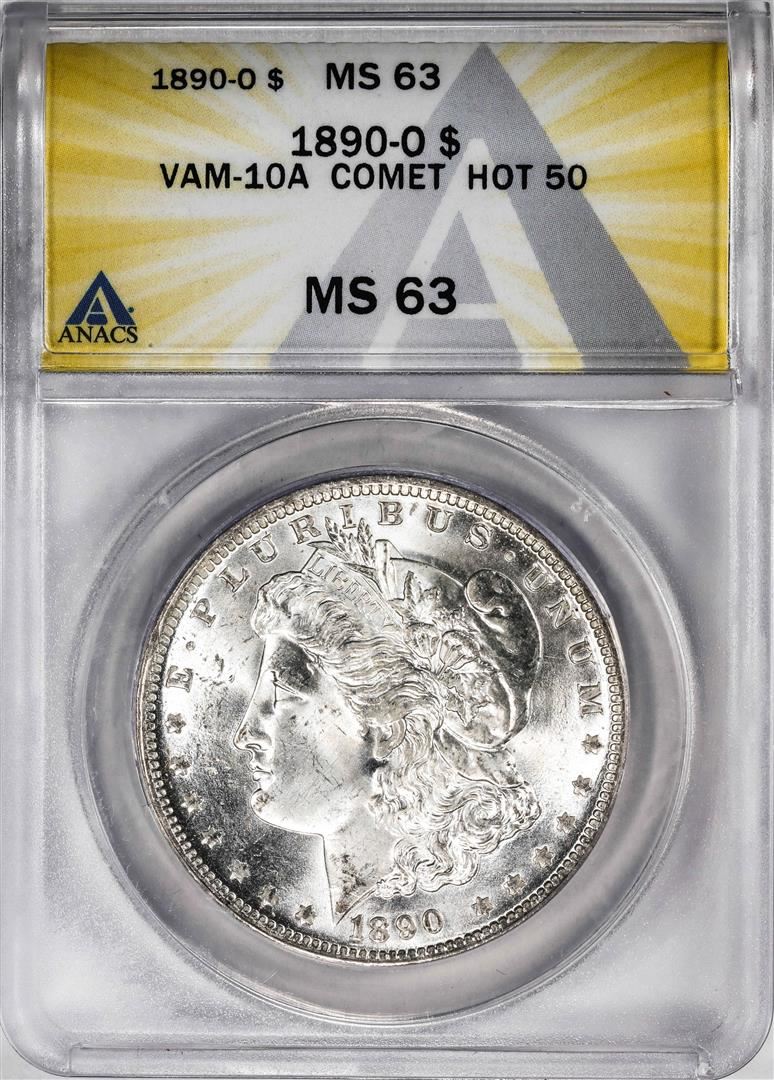 One 1890-O VAM-10A Comet Hot 50 $1 Morgan Silver Dollar Coin ANACS MS63. ANACS Certified.