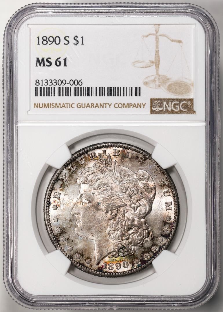 One 1890-S $1 Morgan Silver Dollar Coin NGC MS61. NGC Certified.