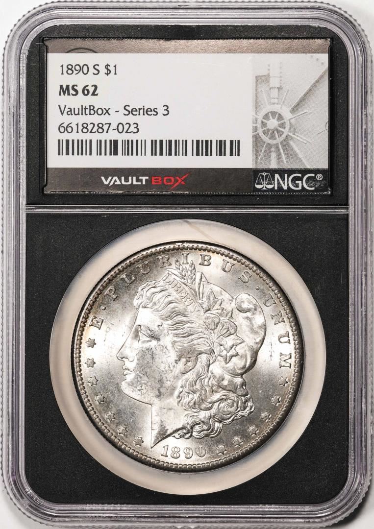1890-S $1 Morgan Silver Dollar Coin NGC MS62 Vaultbox Series 3