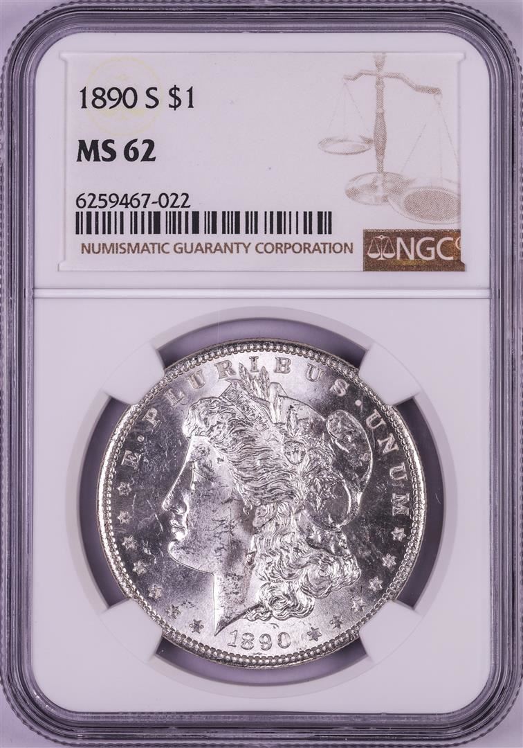 One 1890-S $1 Morgan Silver Dollar Coin NGC MS62. NGC Certified.