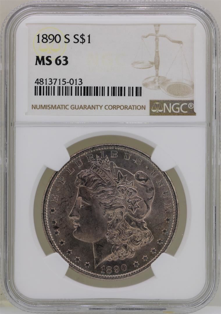 One 1890-S $1 Morgan Silver Dollar Coin NGC MS63. NGC Certified.