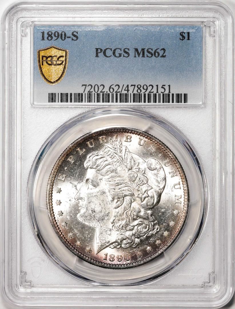 One 1890-S $1 Morgan Silver Dollar Coin PCGS MS62. PCGS Graded.