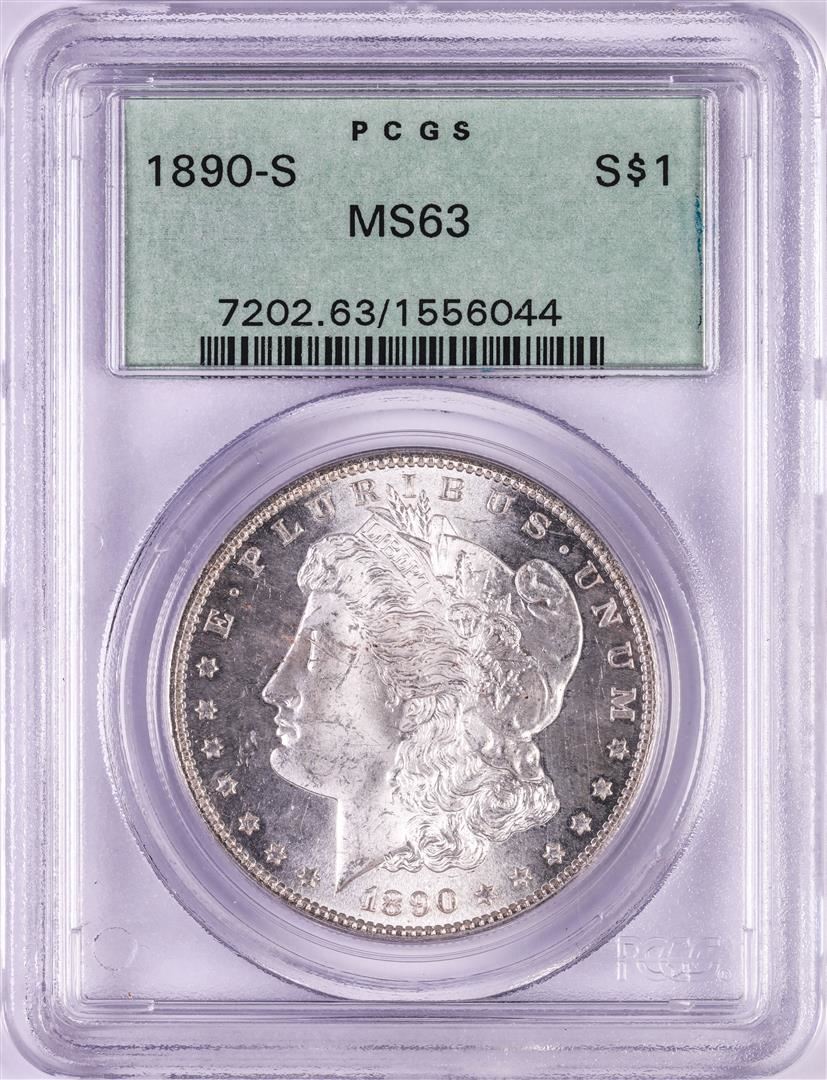 1890-S $1 Morgan Silver Dollar Coin PCGS MS63 Old Green Holder