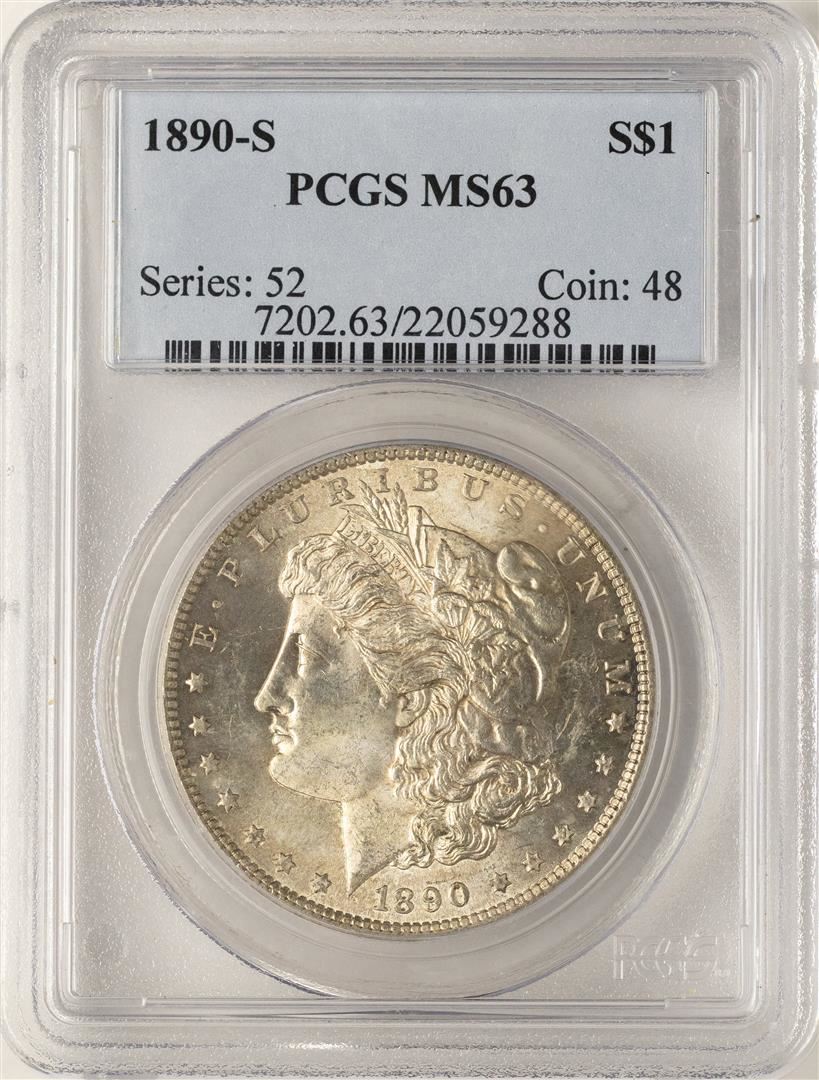 One 1890-S $1 Morgan Silver Dollar Coin PCGS MS63. PCGS Graded.
