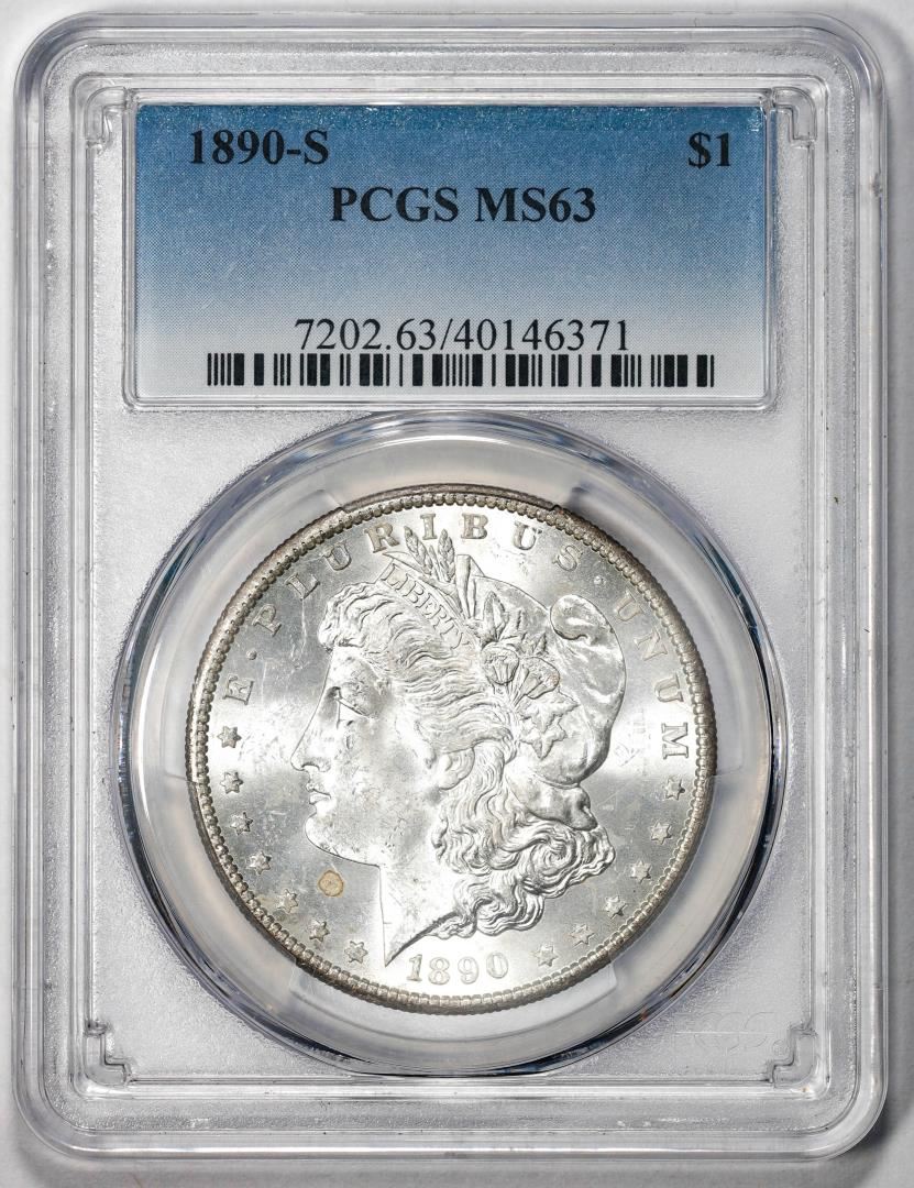 One 1890-S $1 Morgan Silver Dollar Coin PCGS MS63.
