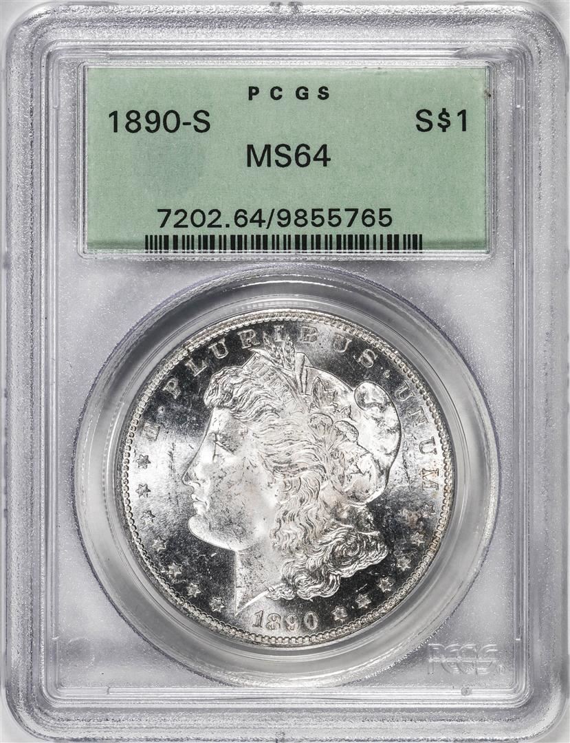 1890-S $1 Morgan Silver Dollar Coin PCGS MS64 Old Green Holder