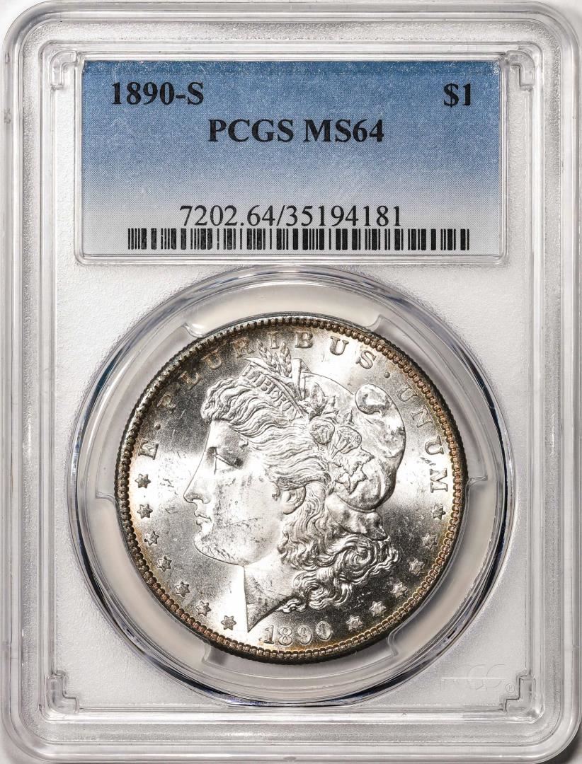 One 1890-S $1 Morgan Silver Dollar Coin PCGS MS64. PCGS Graded.