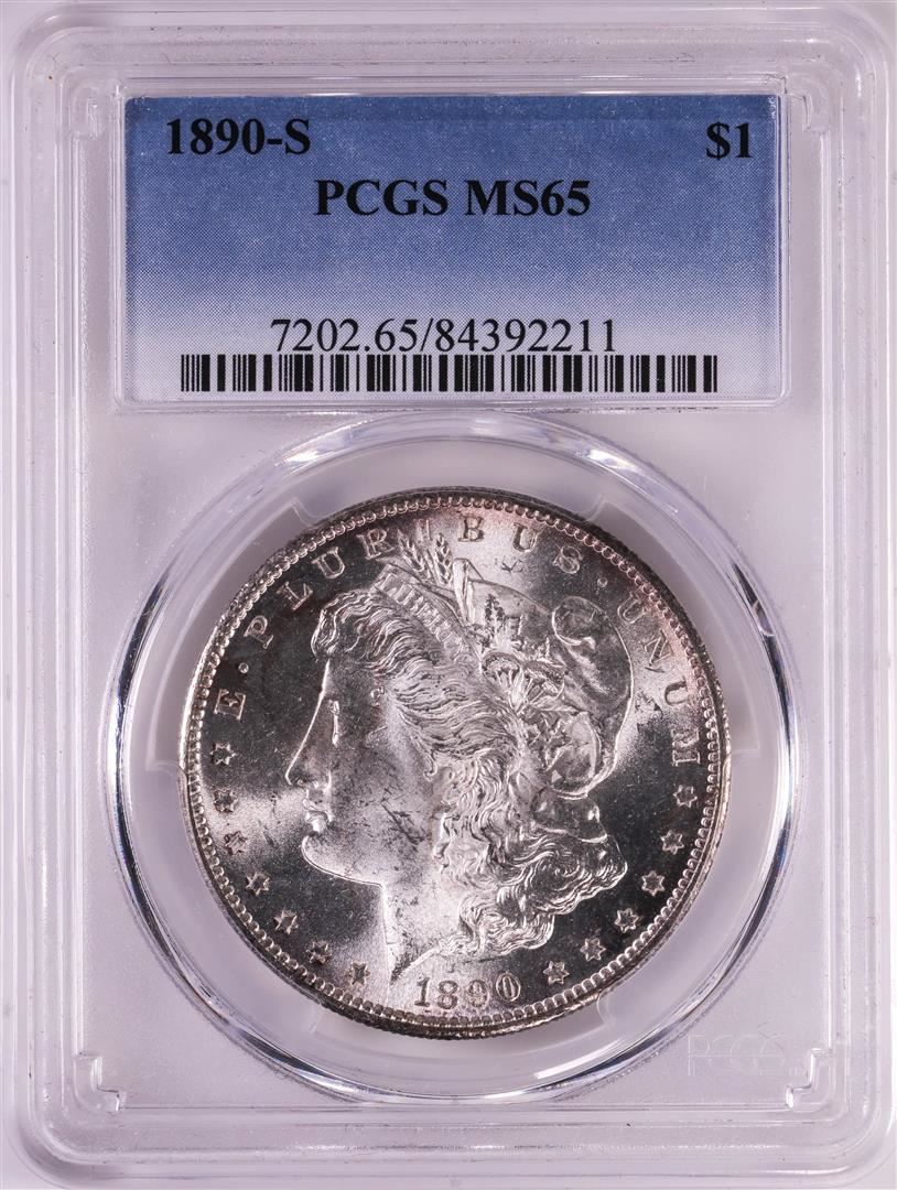 One 1890-S $1 Morgan Silver Dollar Coin PCGS MS65. PCGS Graded.