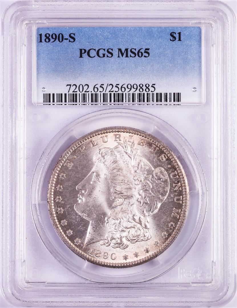 One 1890-S $1 Morgan Silver Dollar Coin PCGS MS65. PCGS Graded.