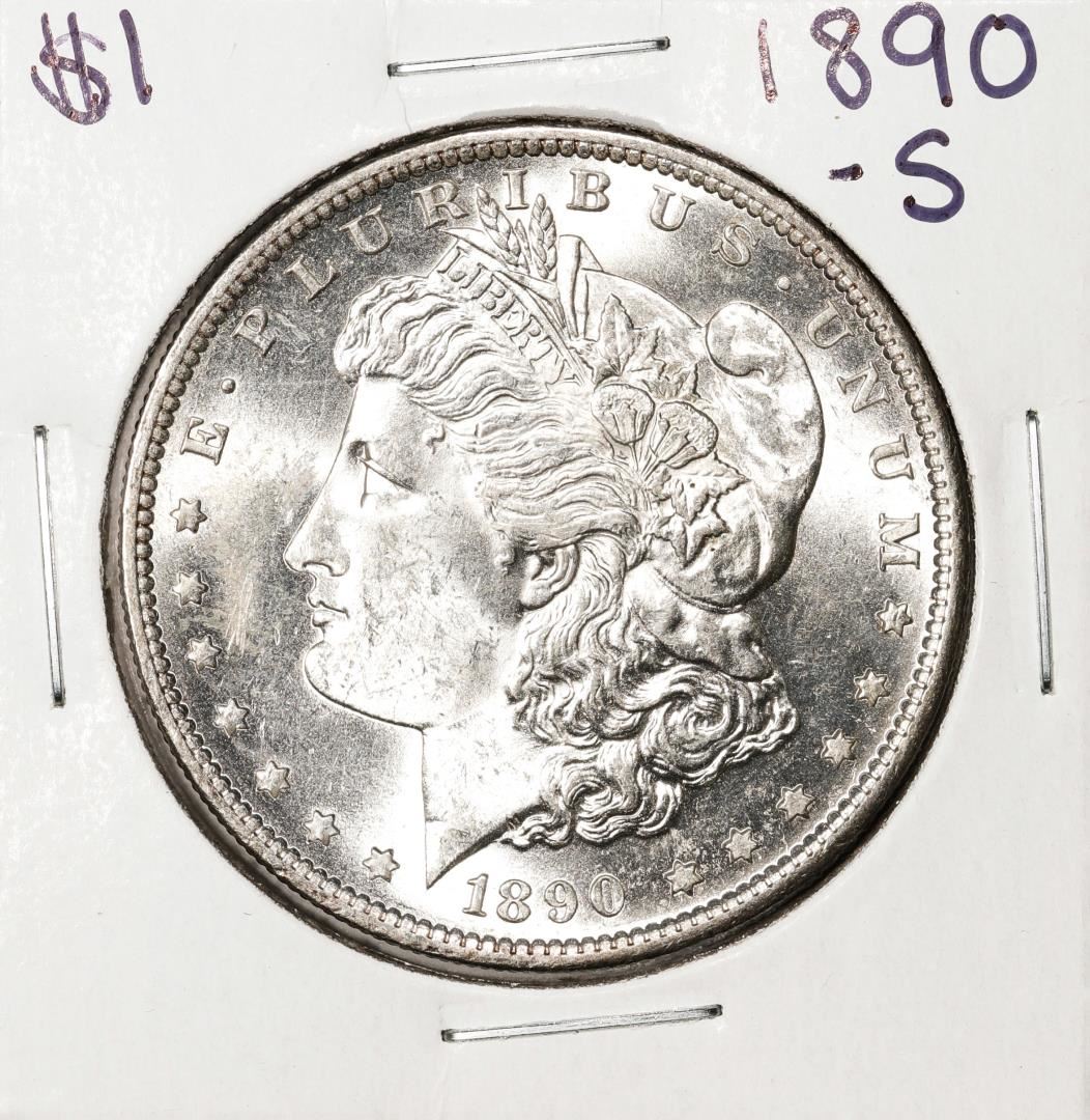 One 1890-S $1 Morgan Silver Dollar Coin.