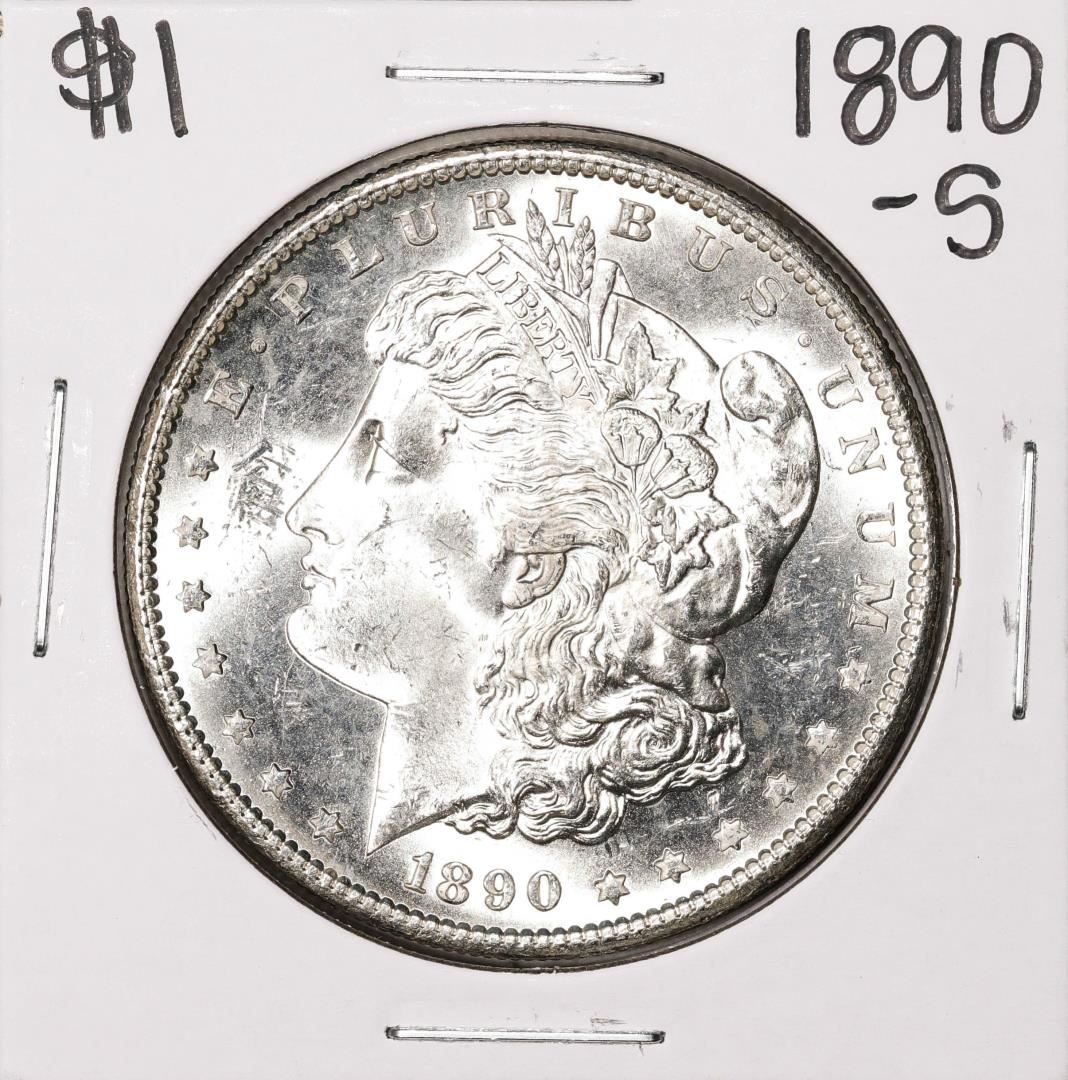 One 1890-S $1 Morgan Silver Dollar Coin.
