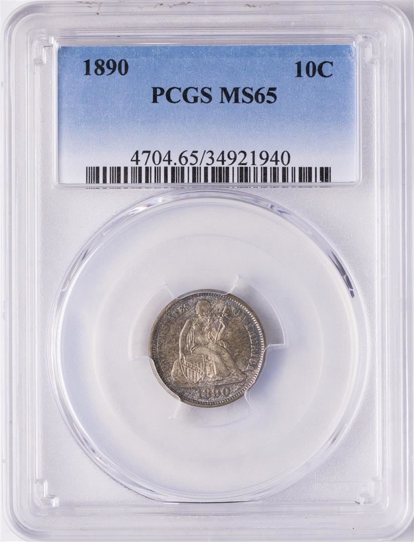 One 1890 Seated Liberty Dime Coin PCGS MS65. PCGS Graded.