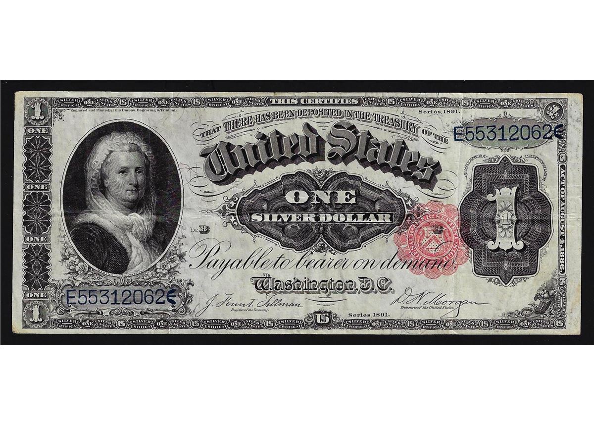 One 1891 $1 Martha Washington Silver Certificate Note.