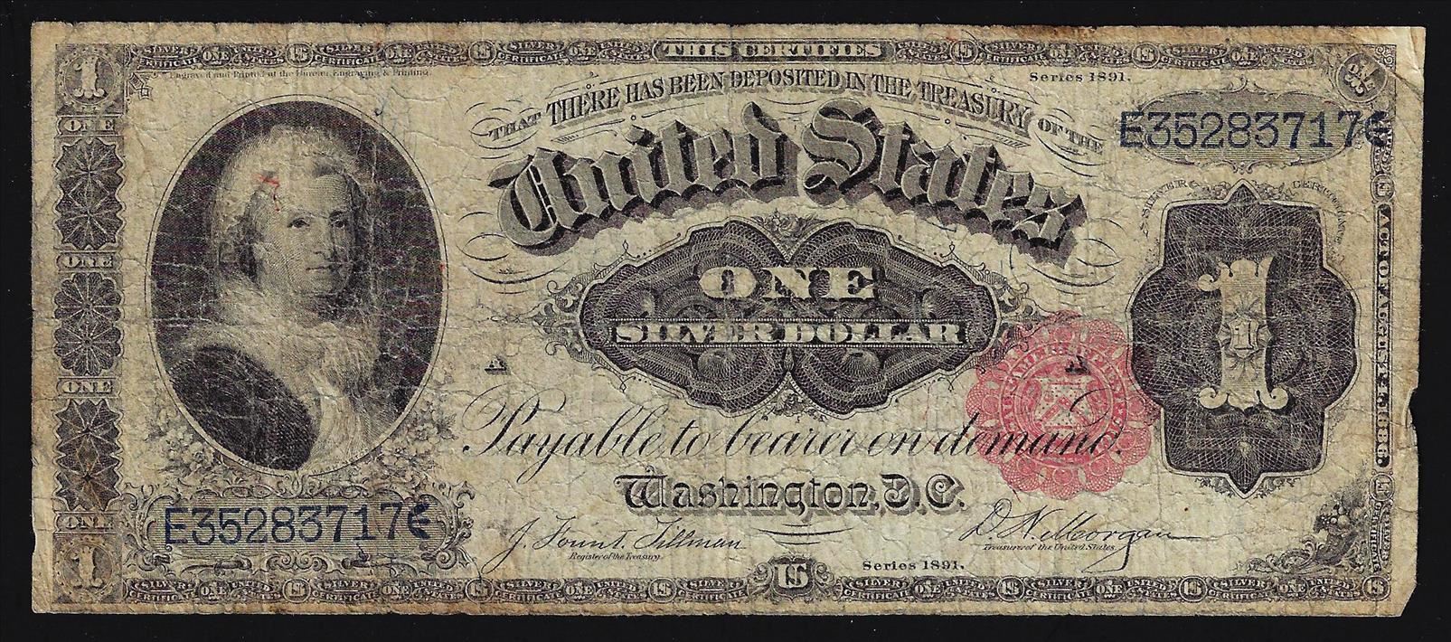 One 1891 $1 Martha Washington Silver Certificate Note.