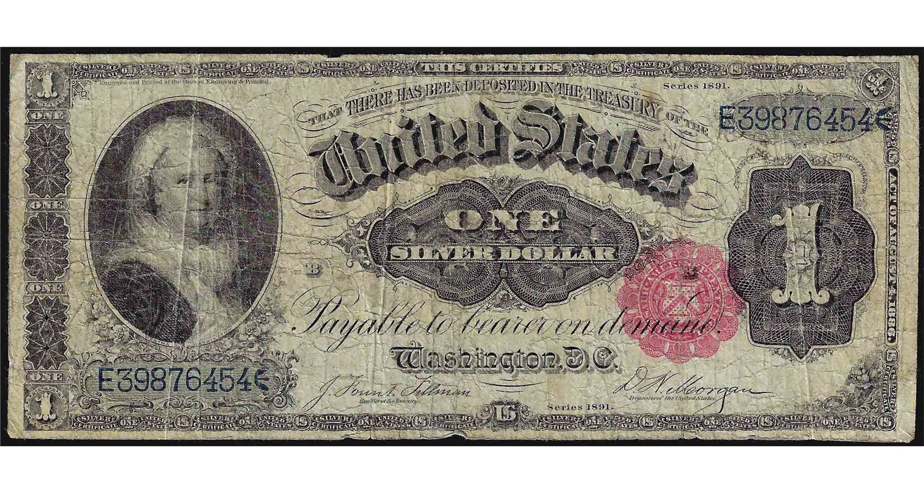 One 1891 $1 Martha Washington Silver Certificate Note.