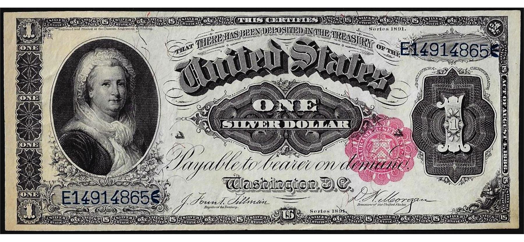 One 1891 $1 Martha Washington Silver Certificate Note.