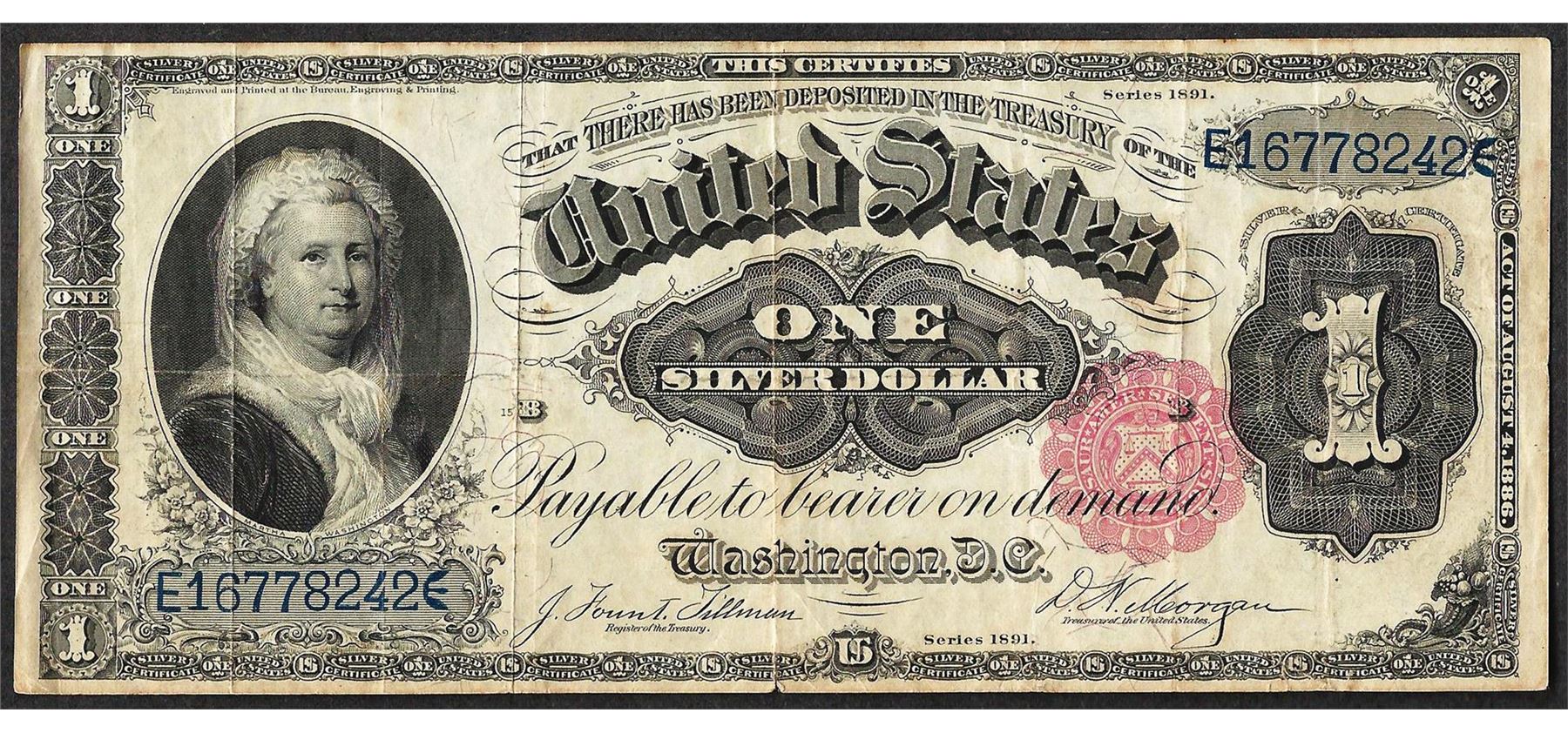 One 1891 $1 Martha Washington Silver Certificate Note.