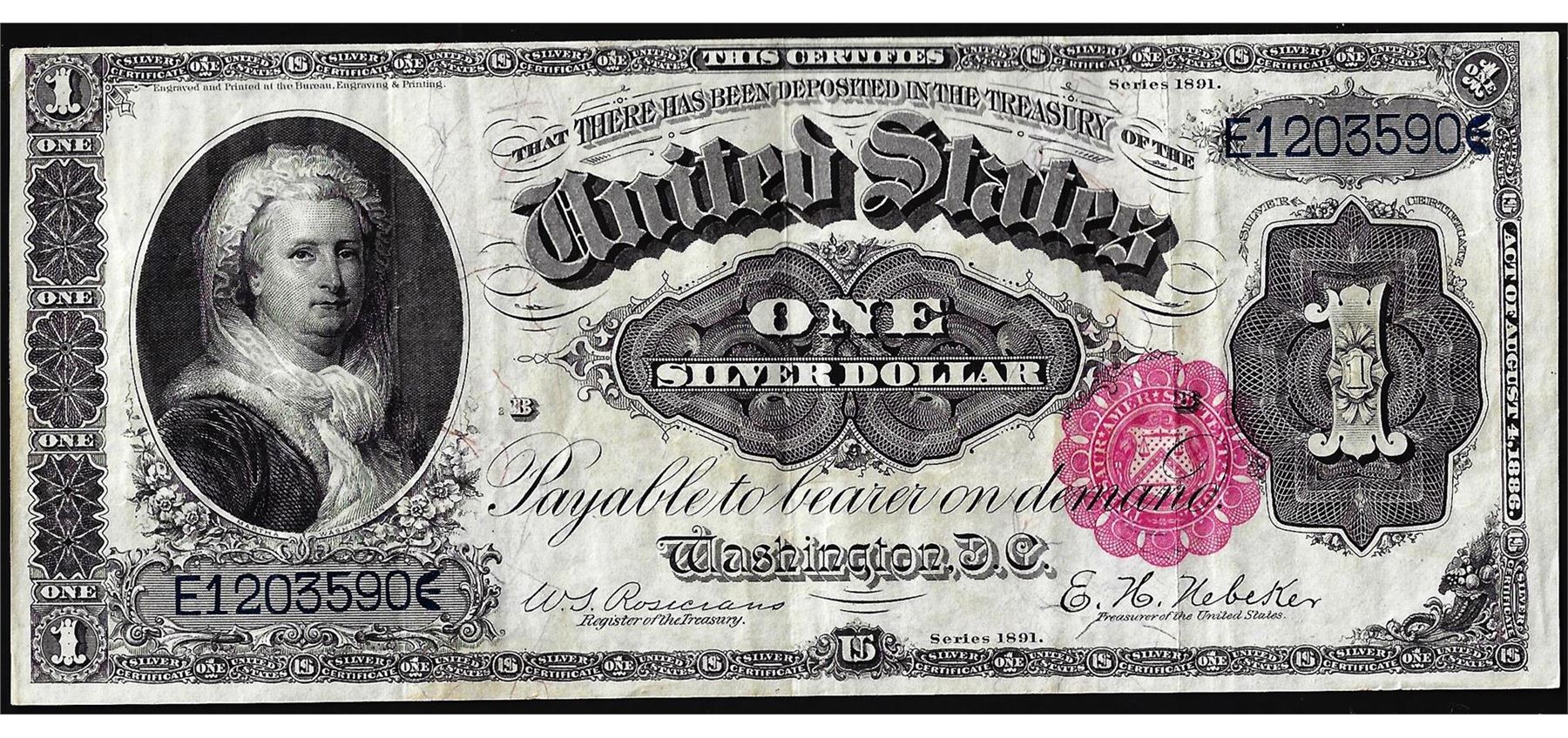 One 1891 $1 Martha Washington Silver Certificate Note.