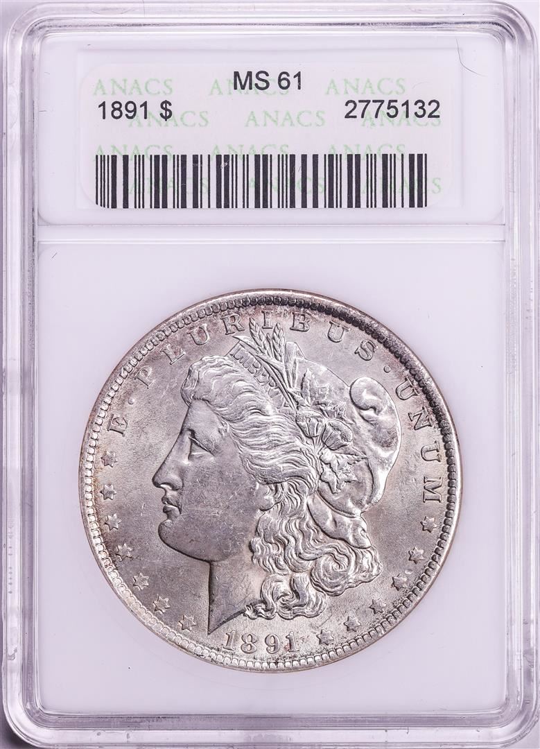 1891 $1 Morgan Silver Dollar Coin ANACS MS61 Old Soap Box Holder