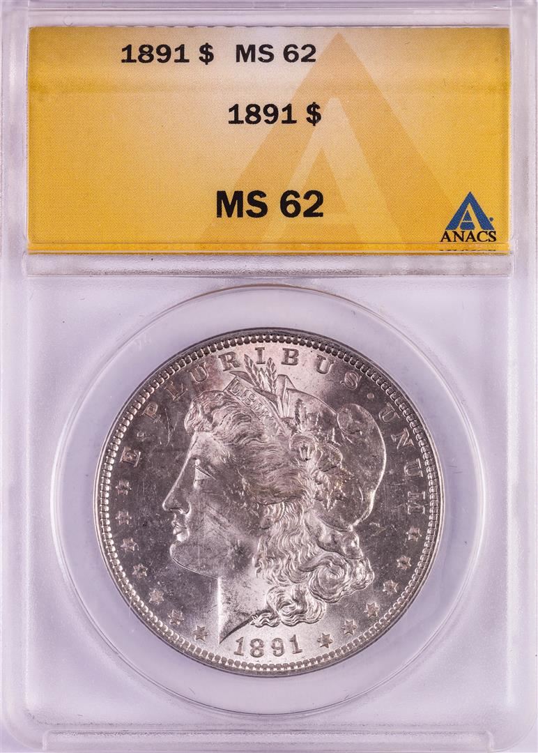 One 1891 $1 Morgan Silver Dollar Coin ANACS MS62. ANACS Certified.