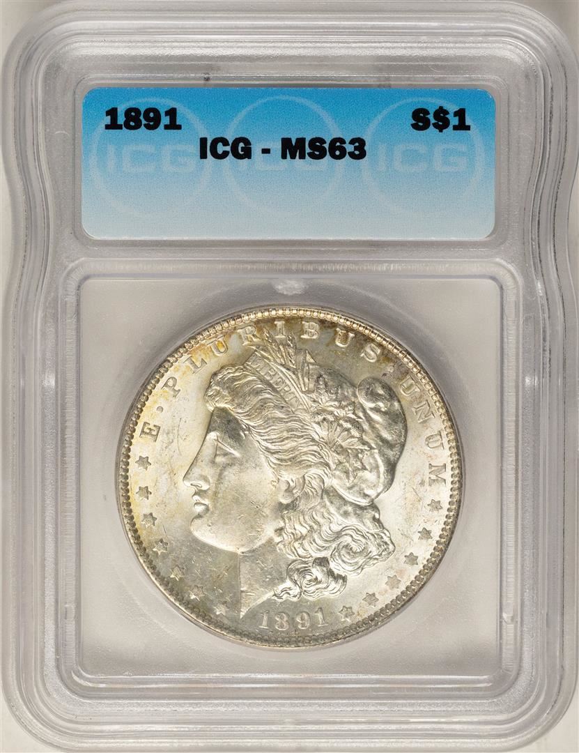 One 1891 $1 Morgan Silver Dollar Coin ICG MS63. ICG Certified.