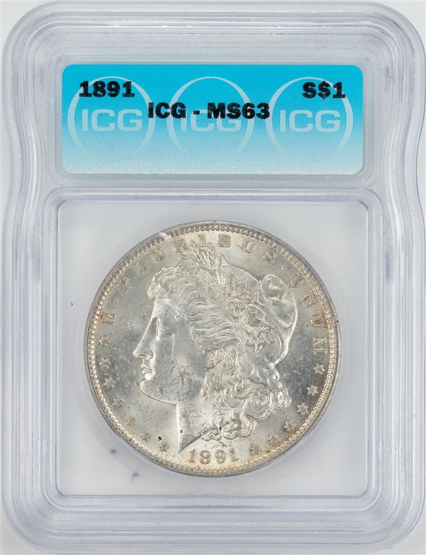 One 1891 $1 Morgan Silver Dollar Coin ICG MS63. ICG Certified.