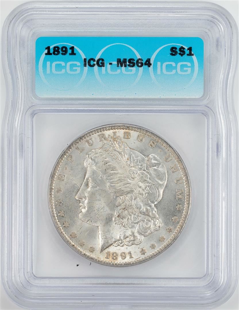 One 1891 $1 Morgan Silver Dollar Coin ICG MS64. ICG Certified.