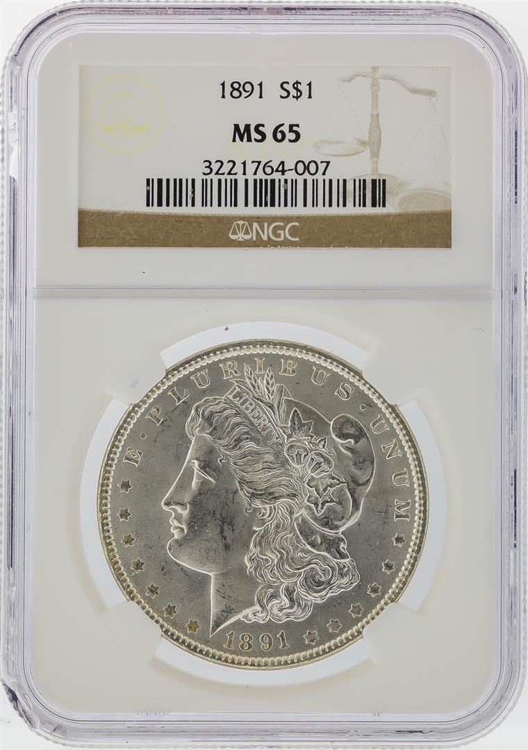 One 1891 $1 Morgan Silver Dollar Coin NGC Graded MS65. NGC Certified.