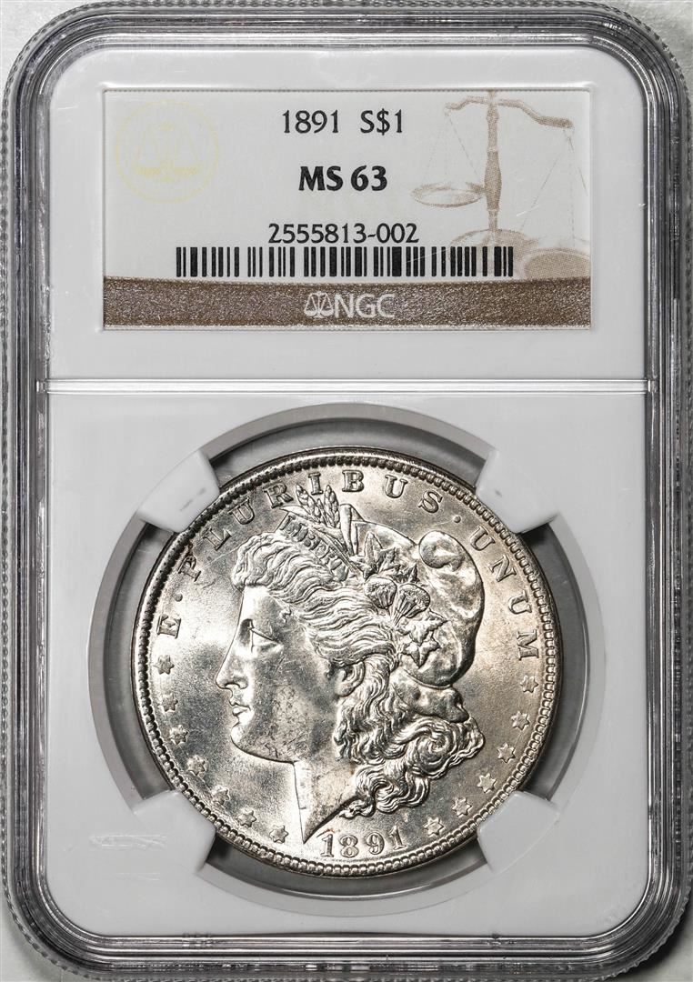 One 1891 $1 Morgan Silver Dollar Coin NGC MS63. NGC Certified.