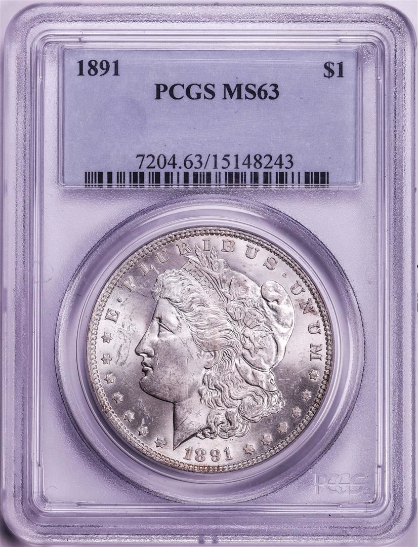 One 1891 $1 Morgan Silver Dollar Coin PCGS MS63. PCGS Graded.