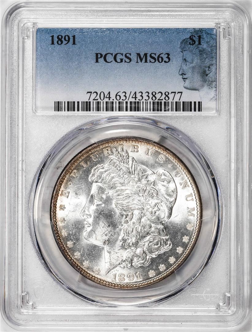 One 1891 $1 Morgan Silver Dollar Coin PCGS MS63. PCGS Graded.