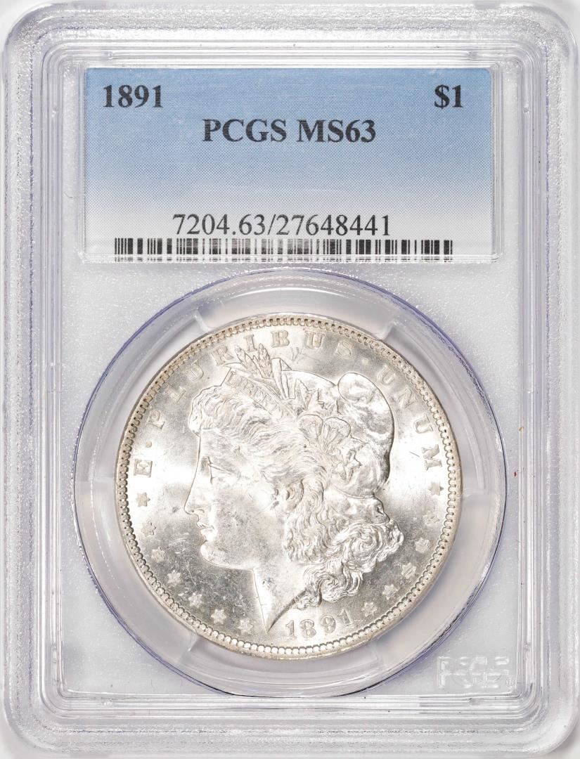 One 1891 $1 Morgan Silver Dollar Coin PCGS MS63. PCGS Graded.