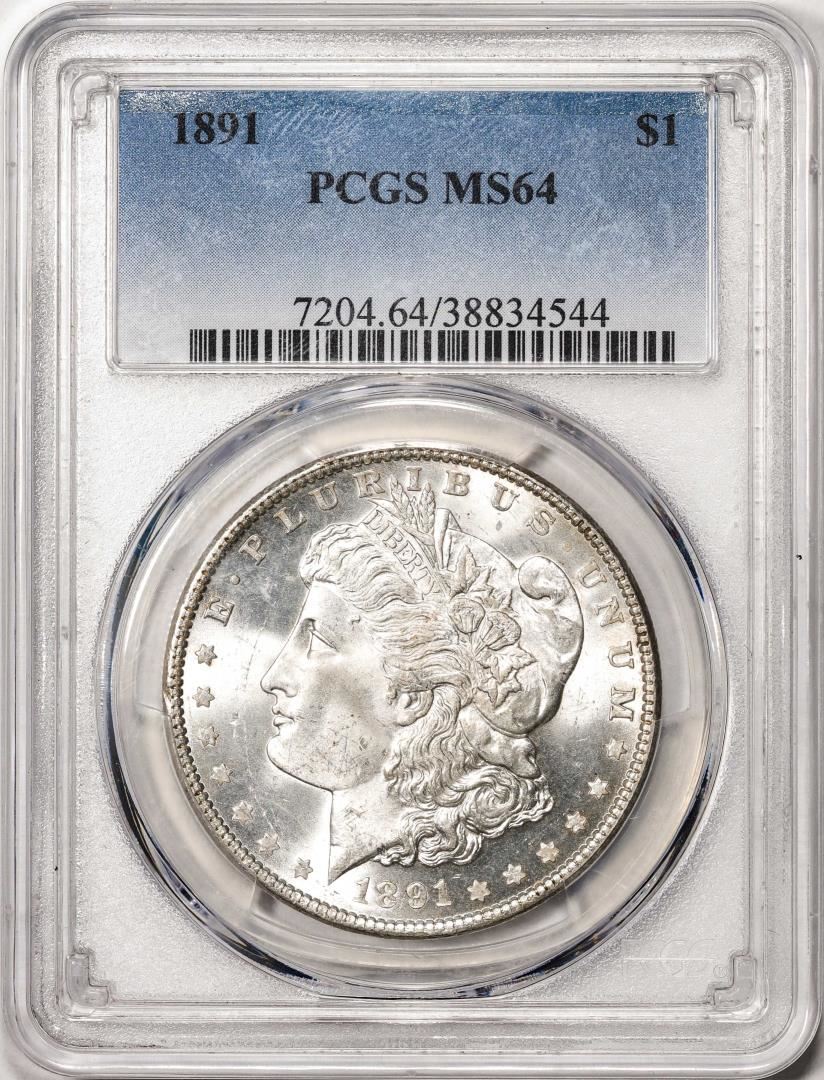 One 1891 $1 Morgan Silver Dollar Coin PCGS MS64. PCGS Graded.