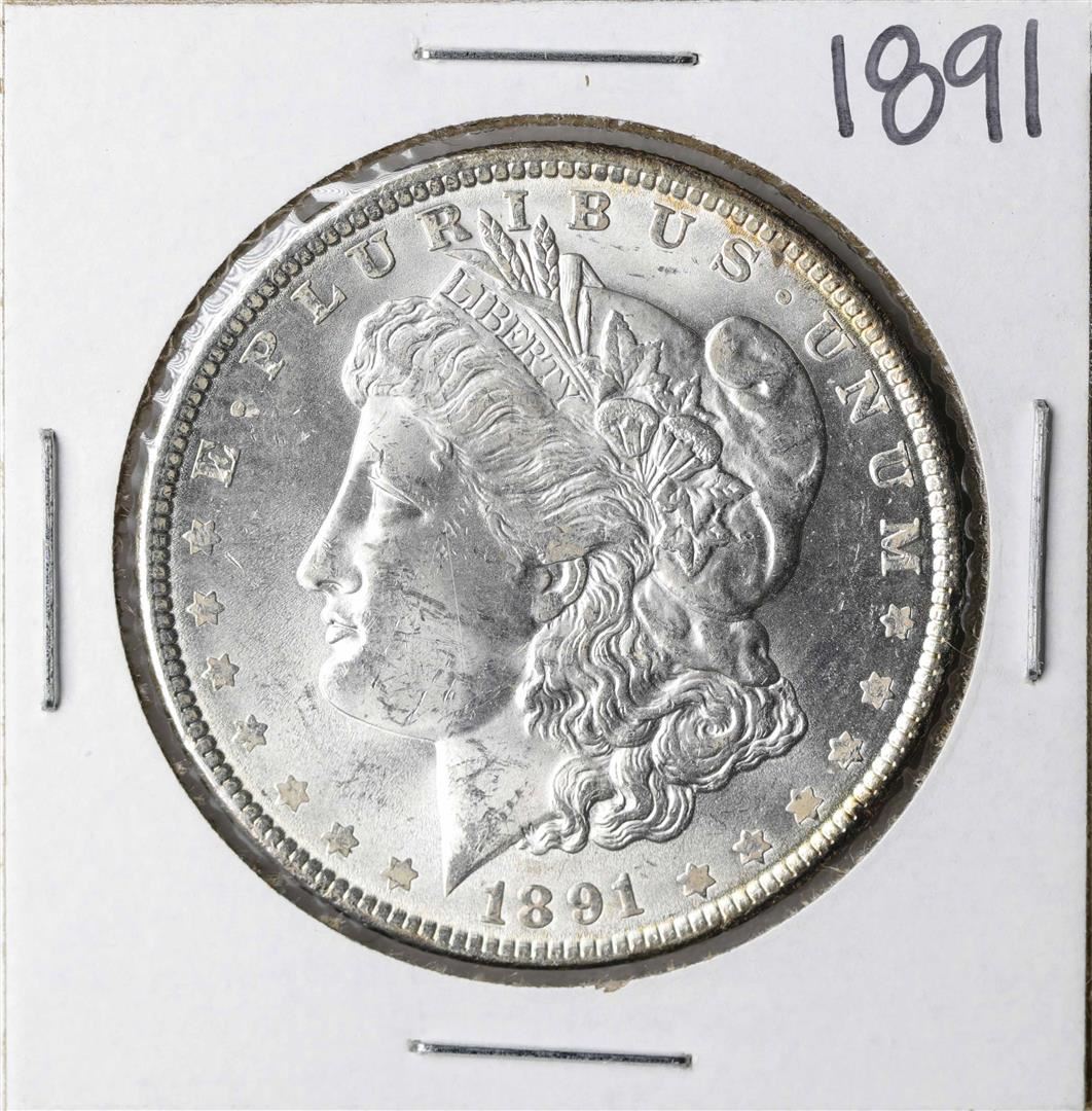 One 1891 $1 Morgan Silver Dollar Coin.