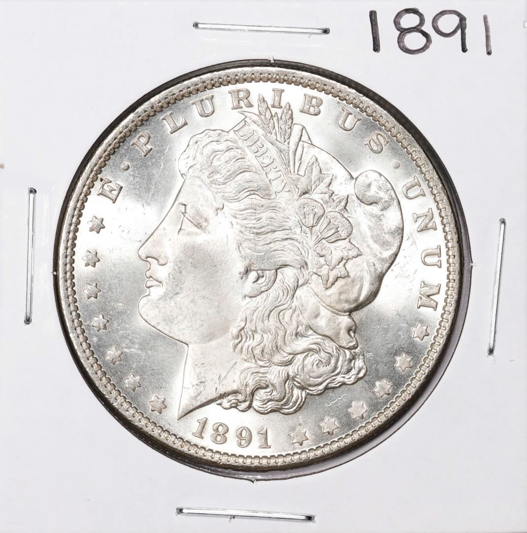 One 1891 $1 Morgan Silver Dollar Coin.