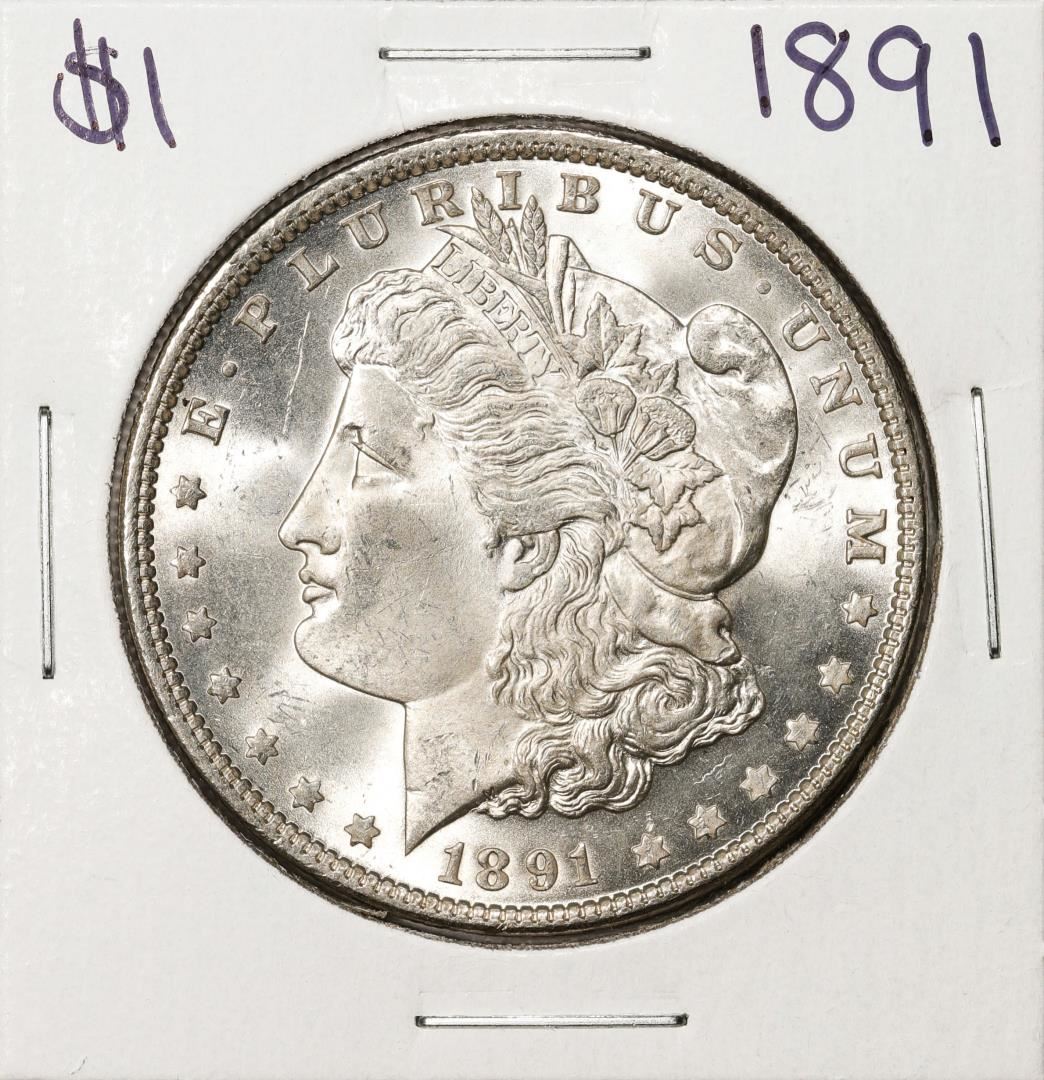 One 1891 $1 Morgan Silver Dollar Coin.