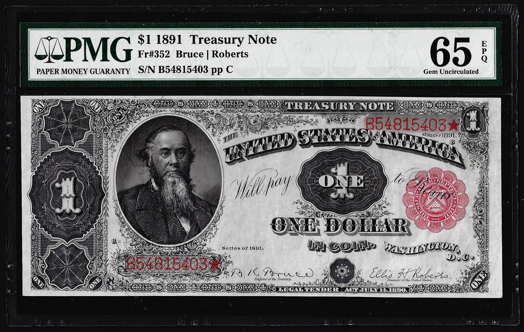 1891 $1 Treasury Note Fr.352 PMG Gem Uncirculated 65EPQ