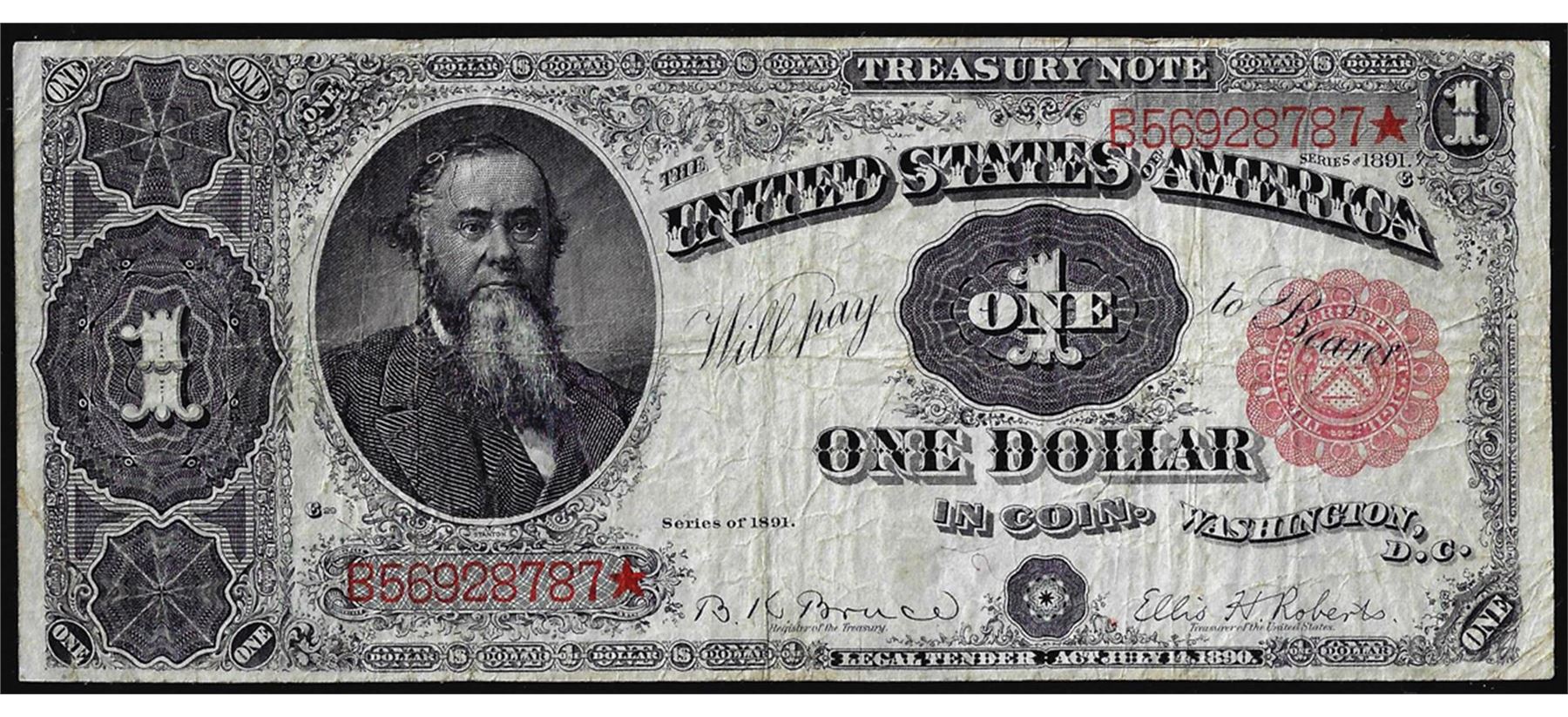 One 1891 $1 Treasury Note.