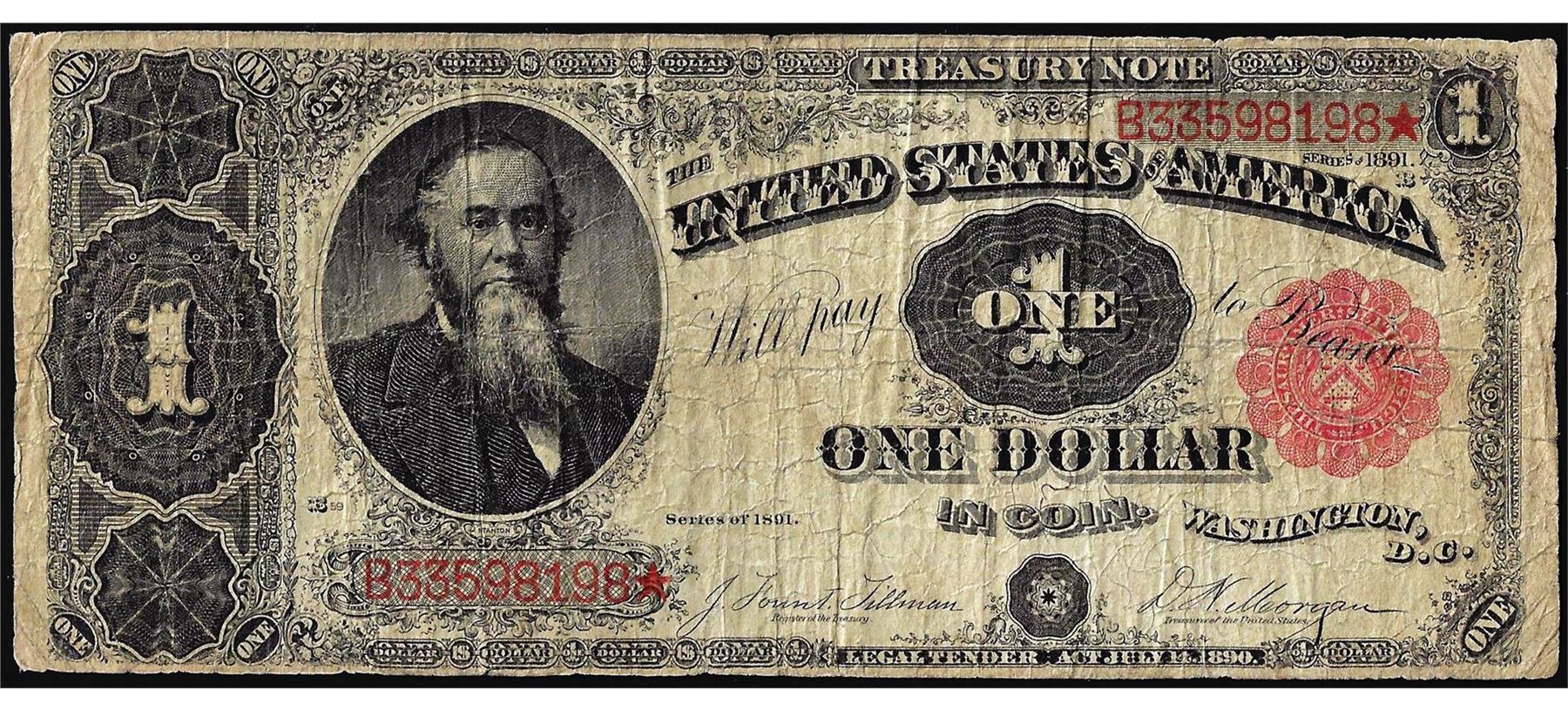 One 1891 $1 Treasury Note.