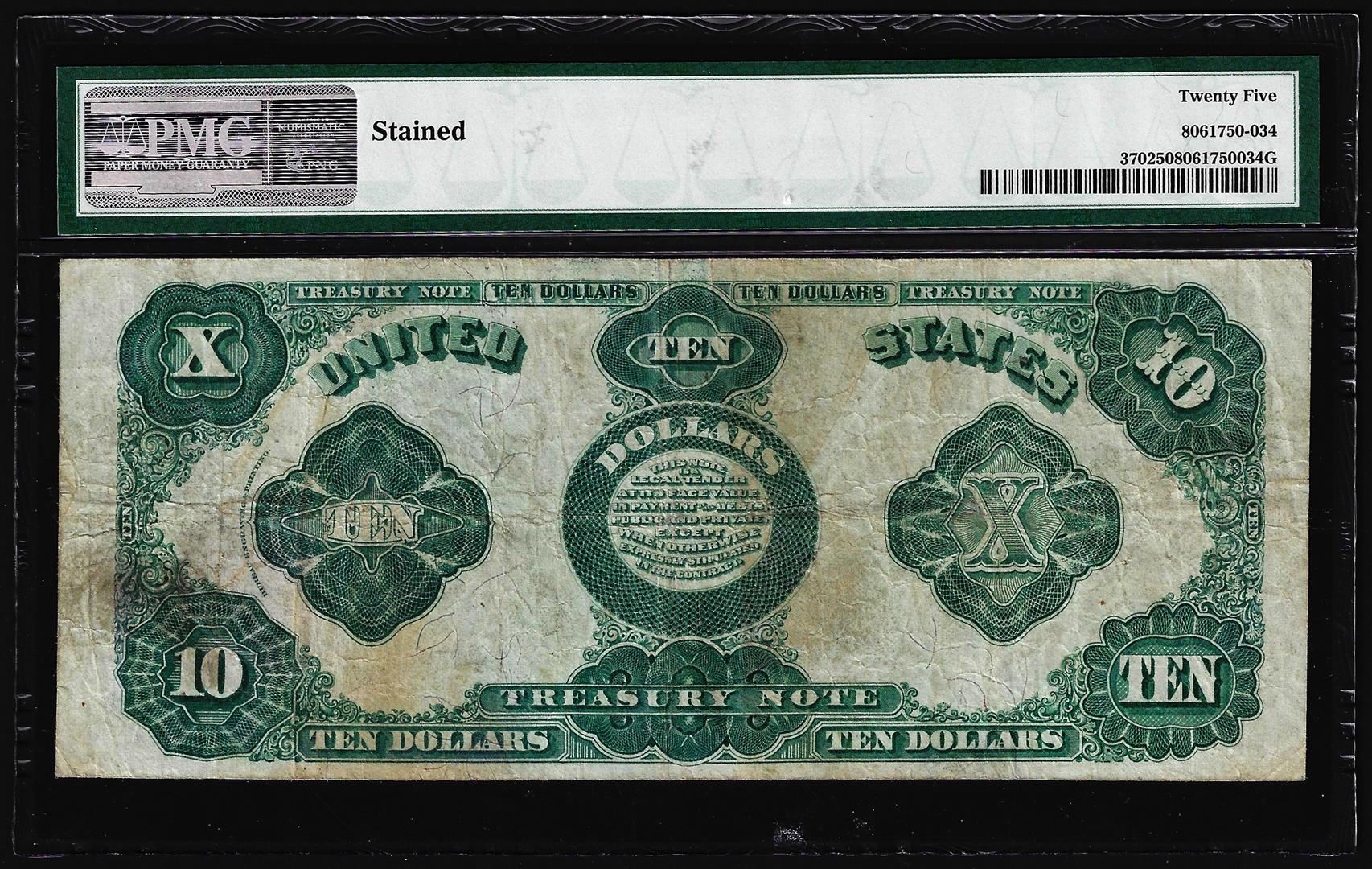 One 1891 $10 Treasury Note Fr.370 PMG Very Fine 25. PMG Certified.
