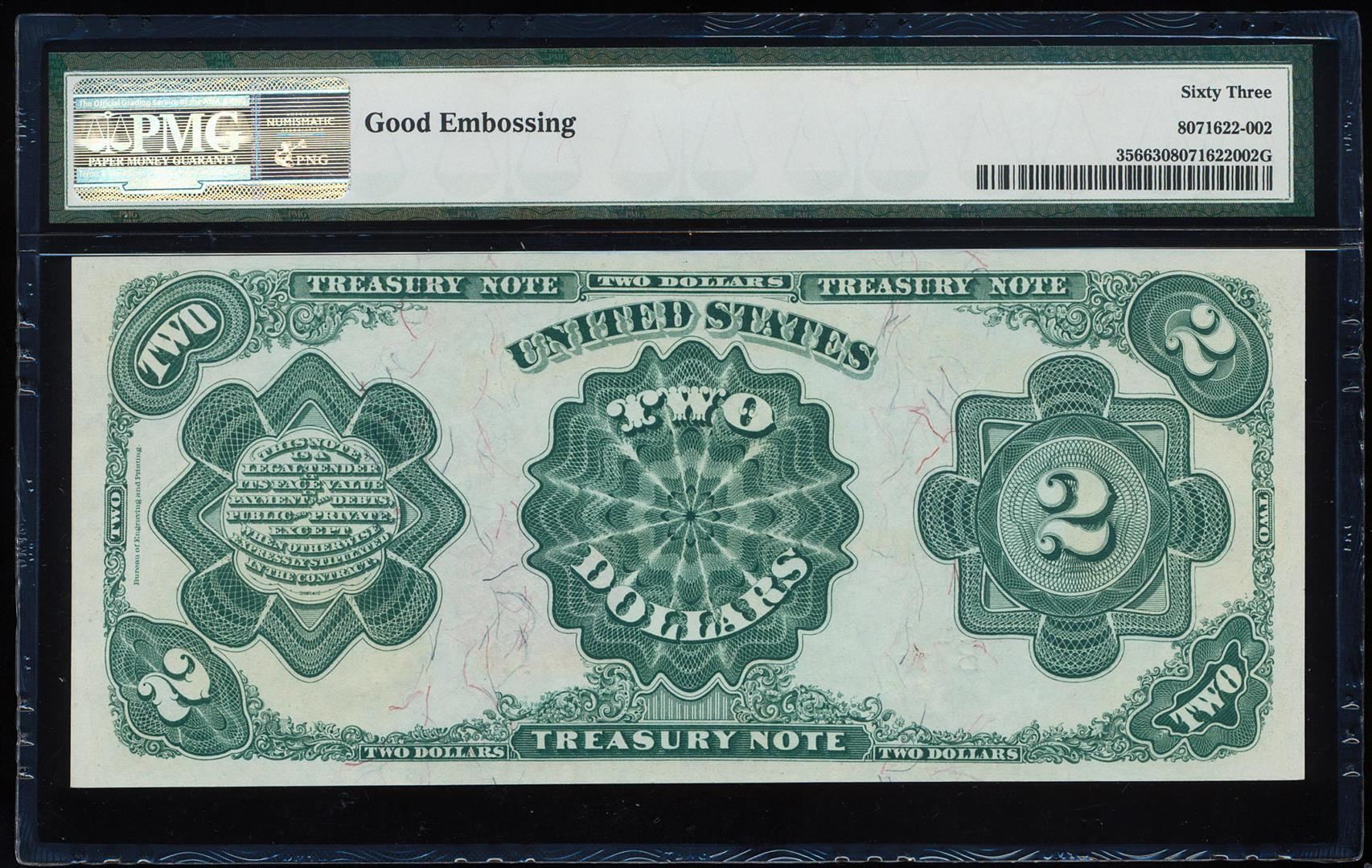 1891 $2 Treasury Note Fr.356 PMG Choice Uncirculated 63 Serial Number 7