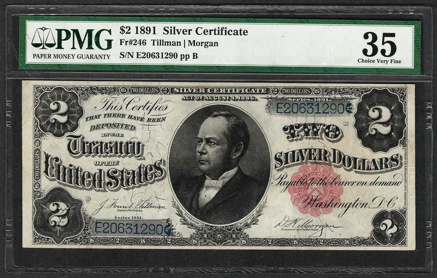 One 1891 $2 Windom Silver Certificate Note Fr.246 PMG Choice Very Fine 35. PMG Certified.