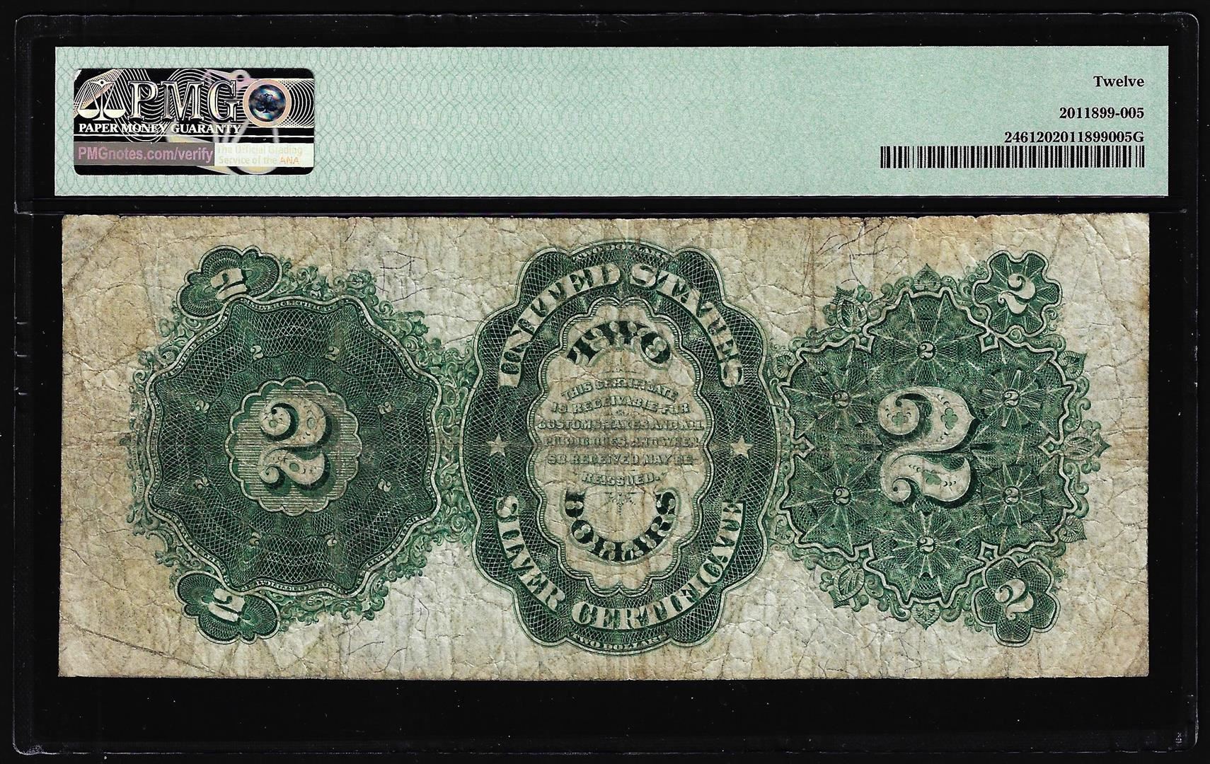 One 1891 $2 Windom Silver Certificate Note Fr.246 PMG Fine 12. PMG Certified.